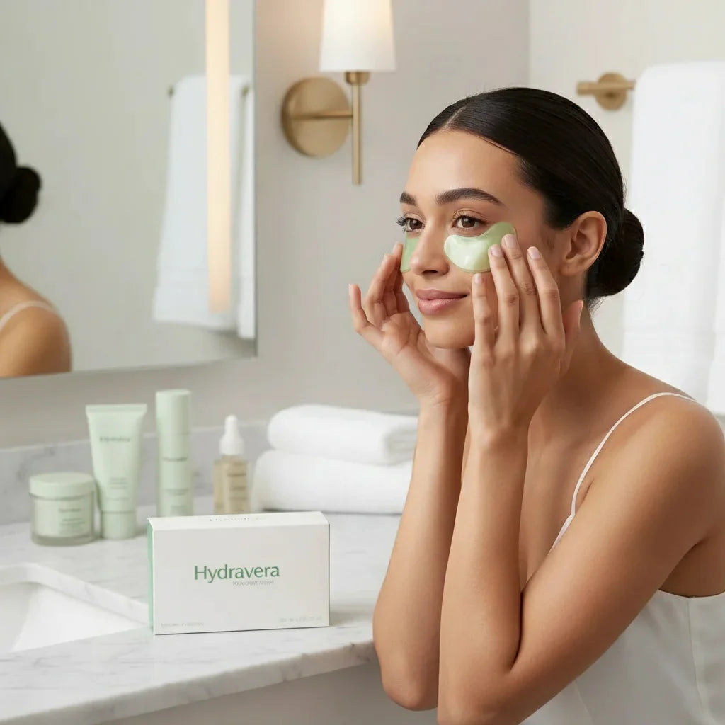 Hydravera est conçu pour lisser, défatiguer et illuminer le contour des yeux en un seul geste. Son format patch hydrogel agit comme un soin express pour atténuer visiblement poches, cernes et signes de fatigue. Parfait avant un rendez-vous, après une courte nuit ou chaque fois que le regard a besoin d’un coup d’éclat.